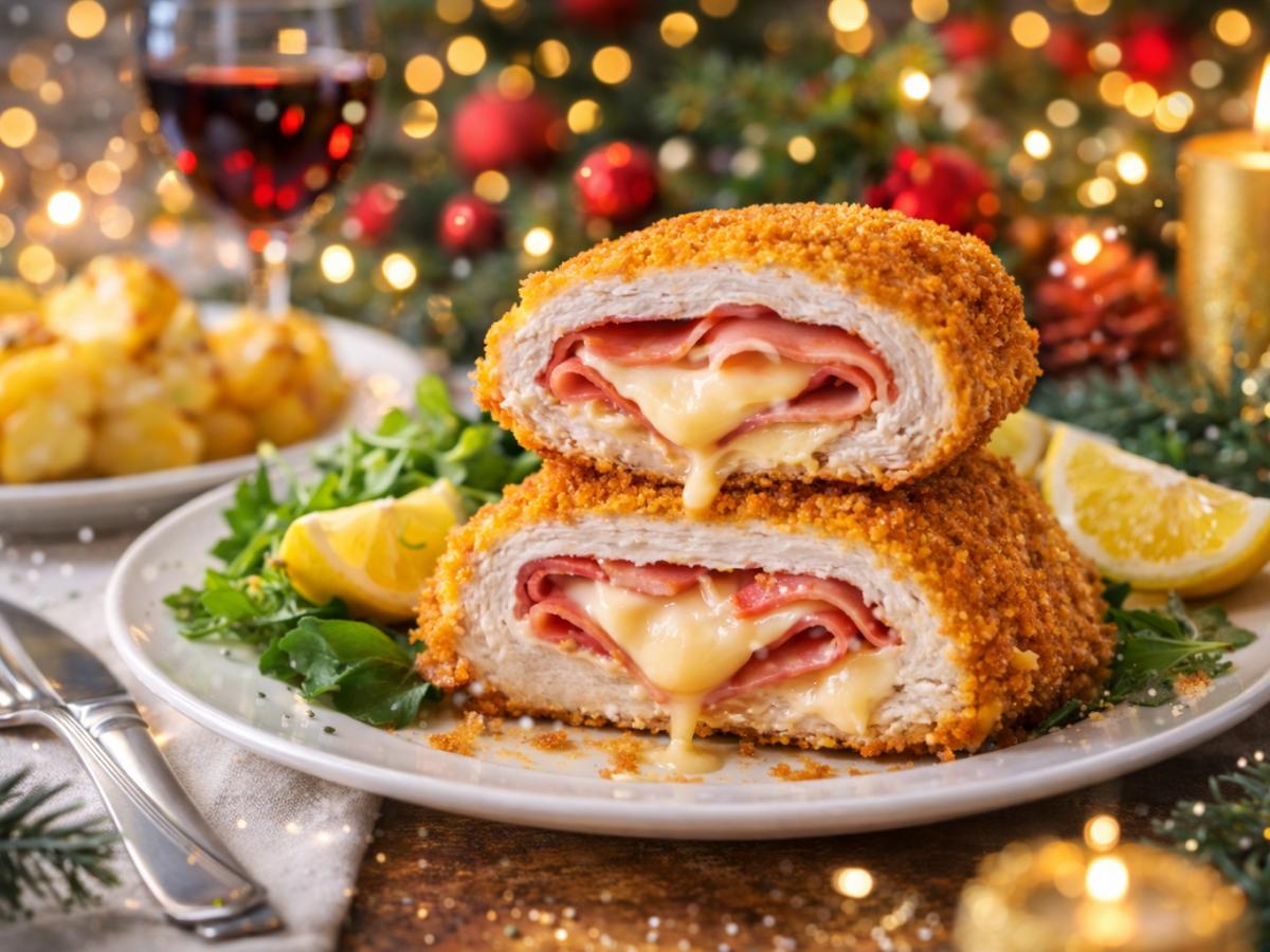 Сочетание нежного куриного филе, ветчины и двух видов сыра создаёт многослойный вкус без лишней тяжести. А хрустящая панировка делает блюдо по-настоящему праздничным, особенно в новогодний вечер.