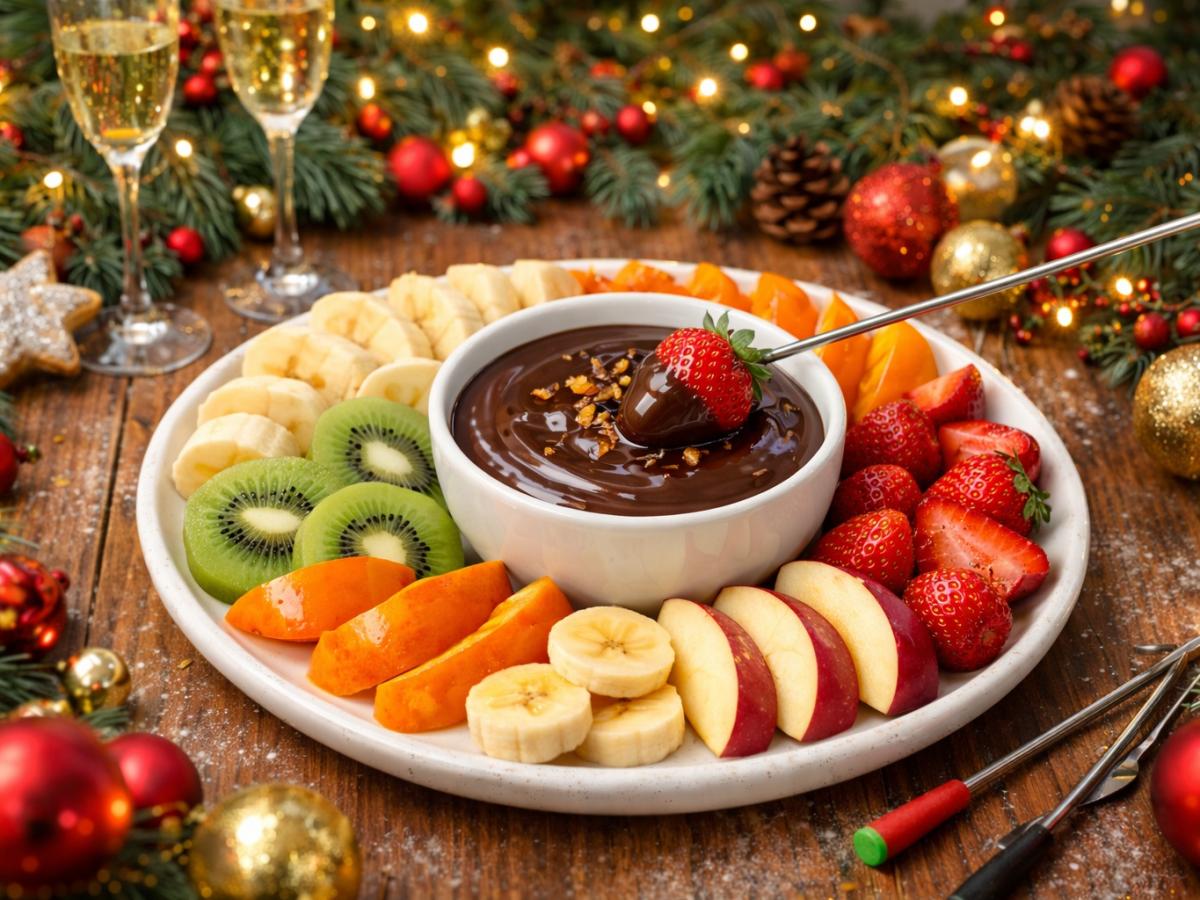 Иногда лучший новогодний десерт — тот, который готовится за считаные минуты и не перегружает стол. Свежие фрукты с тёплым шоколадным соусом выглядят эффектно, подходят и детям, и взрослым, и легко адаптируются под любой вкус. Такой десерт всегда уместен после сытного застолья.