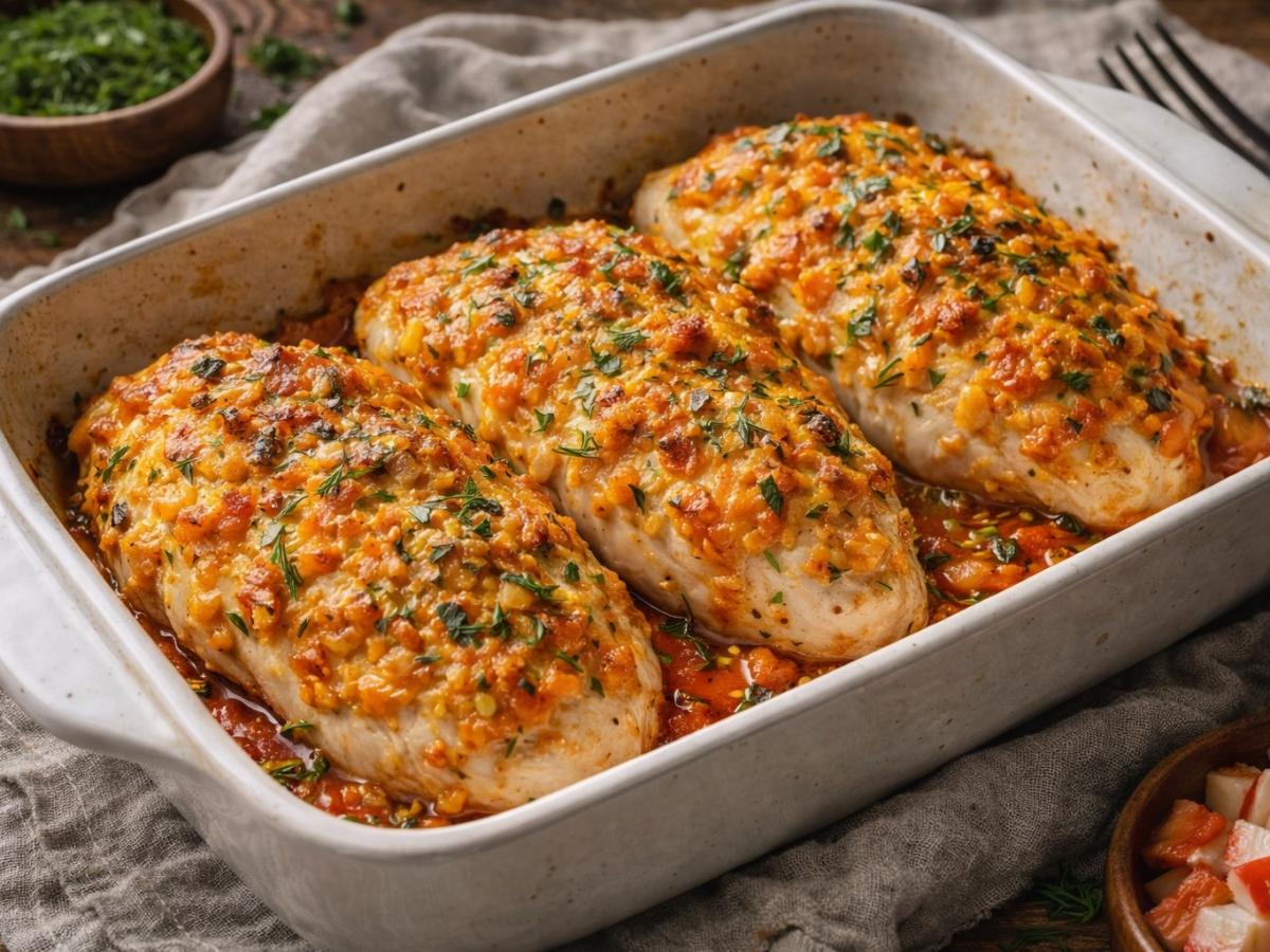 Овощная масса создаёт естественный барьер между мясом и горячим воздухом духовки. Пока грудка запекается, сверху формируется нежная корочка, а соки остаются внутри филе. Именно поэтому готовое блюдо получается мягким, без сухости и волокнистой структуры. Сливочная заливка играет роль "паровой подушки", благодаря которой курица остаётся невероятно аппетитной.
