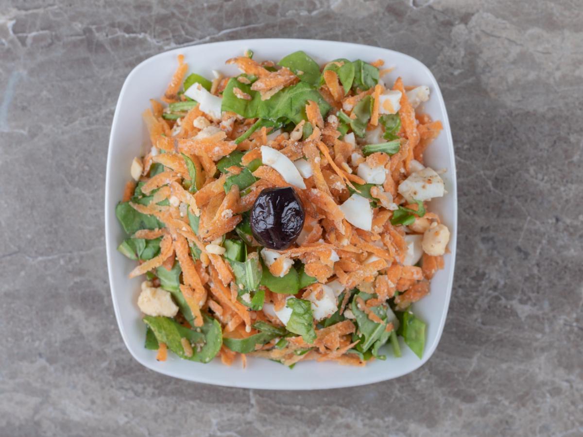 Заправка. Аккуратно перемешайте салат. Заправьте майонезом по вкусу и, если необходимо, досолите. Дайте салату настояться в холодильнике 30-60 минут перед подачей — это позволит вкусам полностью объединиться.