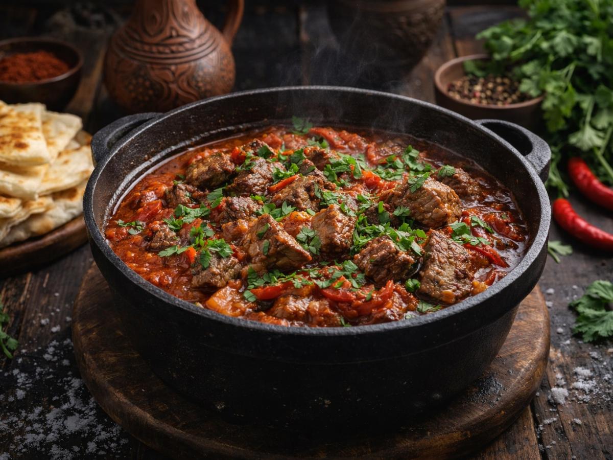 Грузинская кухня славится блюдами, которые сочетают насыщенный вкус, аромат специй и простоту приготовления. Одно из таких — чашушули: густое томлёное мясо в пряном соусе, которое располагает к неторопливому ужину. Правильно приготовленное, оно становится удивительно мягким и буквально тает на языке.