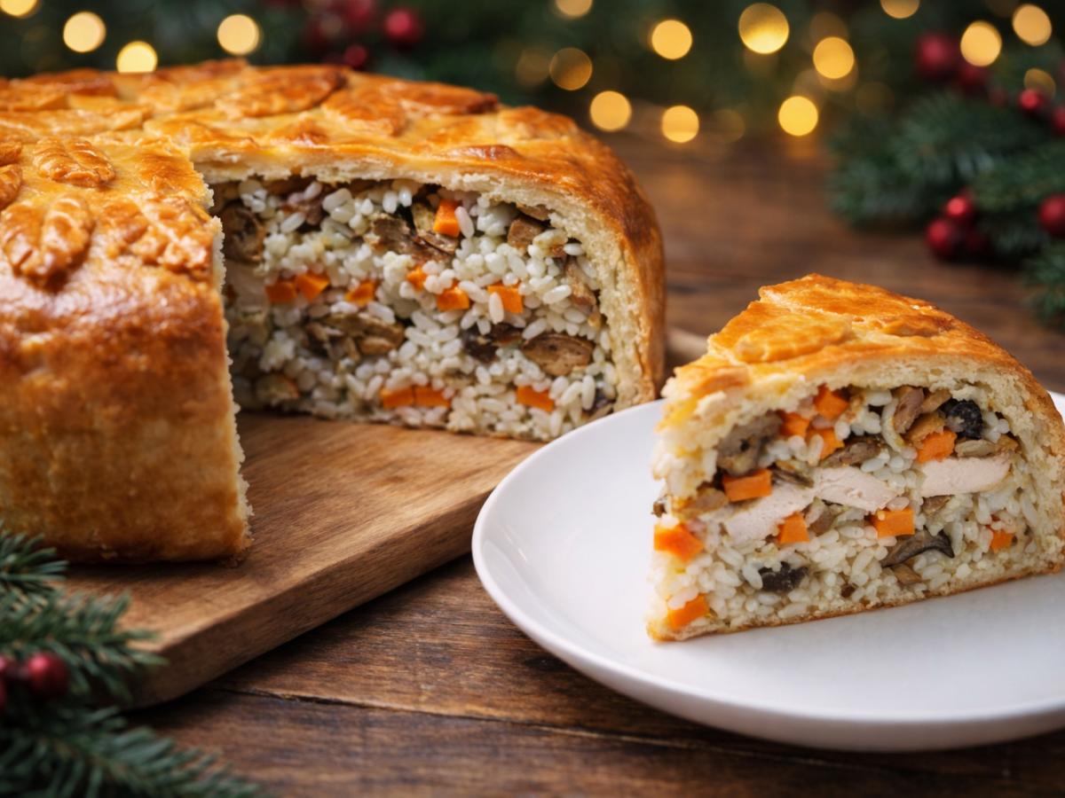 Есть блюда, которые сразу задают настроение праздника, даже если готовятся для обычного семейного ужина. Рождественский пирог с курицей — как раз из таких: сытный, многослойный и по-настоящему домашний. Он легко заменяет запечённую птицу и превращается в центральное блюдо стола.