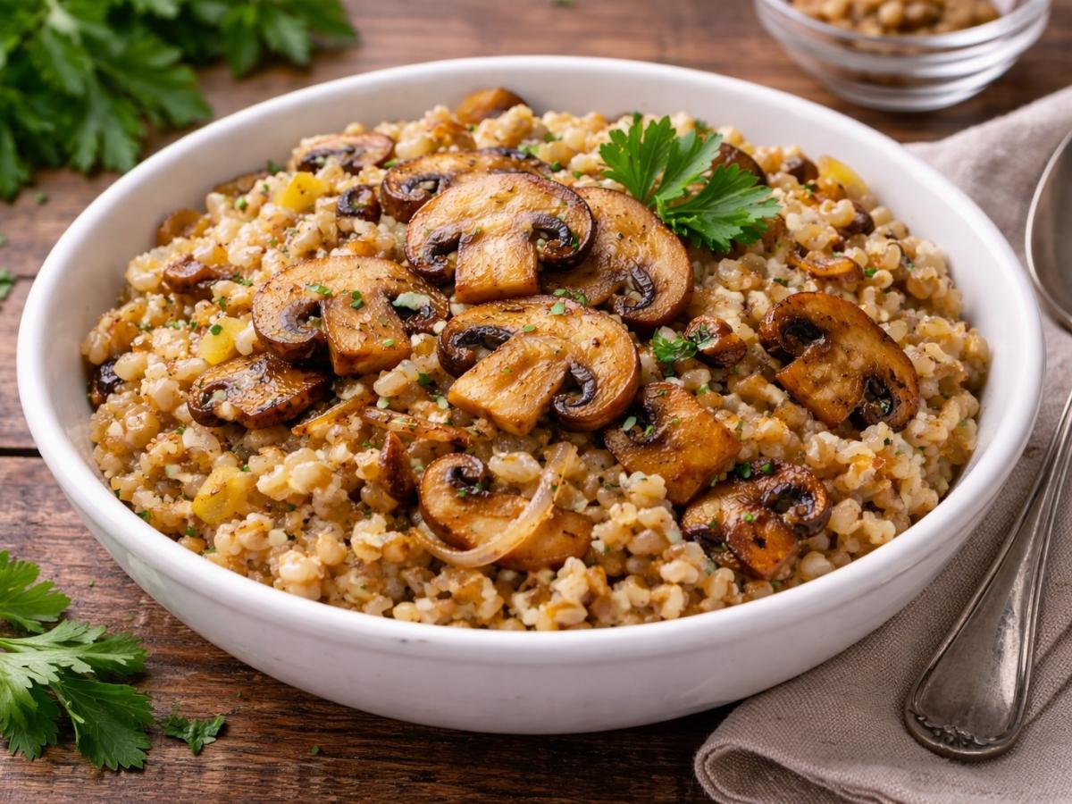 Ячневая каша редко оказывается в центре внимания, хотя при правильном подходе она легко превращается в сытное и выразительное блюдо. В сочетании с жареными шампиньонами и луком крупа раскрывает мягкий ореховый вкус и становится по-настоящему уютной. Такой вариант отлично подходит для веганского меню и не требует сложных техник.