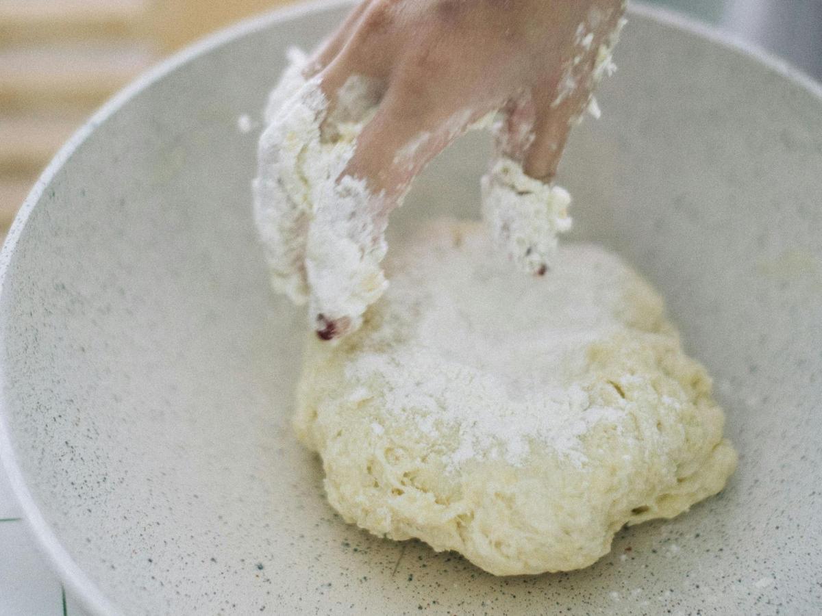 Накройте тесто плёнкой или полотенцем и оставьте на 1 час для подъёма.