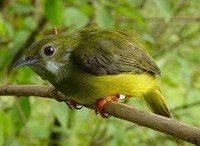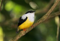 Так вот, золотистые манакины всегда прилетают на токовище большой компанией. При этом танец исполняет лишь один самец, остальные в лучшем случае вяло "дрыгаются на подтанцовке", а иногда просто сидят рядом на ветках. Это поведение достаточно необычно для воробьиных птиц — ведь обычно представители этой группы не терпят присутствия конкурента в зоне видимости и стараются его прогнать. А здесь наоборот — создается впечатление, что пернатый донжуан как бы специально приглашает своих коллег посмотреть на его выступление и поддержать его.