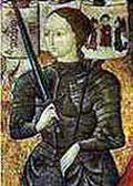 С прозвищем Жанны La Pucelle - "Девственница" тоже не все ясно. Французское слово происходит от латинского puella - "дочь", для "девственницы" имеется совершенно иначе звучащий латинский термин — virgo . Значит, это намек на ее происхождение из Орлеанского дома? Хотя прямых доказательств того, что Жанна дочь королевы Елизаветы не существует.