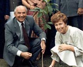 По воле обстоятельств, с большим трудом аккредитовавшись в группе журналистов, мне удалось сопровождать чету Горбачевых в поездке. Чаще удавалось пообщаться с представителями "второго эшелона". И, как мне потом говорили, Михаил Сергеевич закрывал глаза на то, что в окружении его супруги оказался репортер. В городе Хайфа, где находится один из самых знаменитых в мире "Технионов" (Технический университет), Горбачеву за его заслуги решили присвоить звание почетного академика. Как в любом престижном Вузе, здесь тоже существует определенный ритуал награждения почетным званием. Где-то в подвалах есть заветная бочка вина, из которой два серебряных кубка наполняют только в знаменательный день, когда чествуют нового академика. Прямо на многолюдной площади, из одного кубка пьет ректор, из второго — новоявленный академик. На людях Горбачевы обращались друг к другу по имени-отчеству, но на ты.