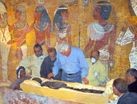 В первых числах января египетские ученые исследовали мумию фараона Тутанхамона при помощи компьютерного томографа. Как отмечается в заявлении министра культуры Египта, произведено вскрытие золотого саркофага, в котором покоилось тело фараона XVIII династии, правившего в 1351 — 42 годах до нашей эры, в эпоху Нового Царства. Исследователи пытаются выяснить причины смерти молодого фараона, его точный возраст и происхождение