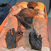 На снимках: доктор Хавас над мумией и мумия в томографе