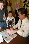 Во Дворец восточных единоборств на Каширском шоссе народ шел с воодушевлением — Рояма представлял две части своей автобиографической книги "Моя жизнь — каратэ". Первая уже известна России, а вот вторая издана впервые. Так что зал на Каширке, недавно отреставрированный и являющийся самым большим в Европе, с трудом смог вместить всех желающих своими глазами увидеть Мастера. К тому же желающим Рояма оставлял свои автографы на книге, календаре или кимоно.