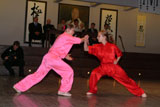 Завершали вечер показательные выступления учеников Александра Нестеренко. Особенно ярким и интересным для зрителей оказалось тамешевари — разбивание каменных блоков. Эффектную технику продемонстрировала сборная команда России по ушу, яркие приемы — спортсмены Центра реального айкидо Любомира Врачаревича.