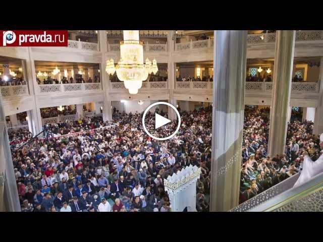 Сегодня около 140 тысяч человек в Москве приняли участие в праздновании Курбан-байрама. Исламский праздник в столице на этот раз отмечают в Исторической, Мемориальной и, конечно, Соборной мечетях. Последняя, напомним, открылась после реставрации только вчера, 23 сентября. В церемонии приняли участие российский президент Владимир Путин, а также его коллеги из Турции и Казахстана - Реджеп Эрдоган и Нурсултан Назарбаев. И сегодня здесь возглавил богослужение председатель Совета муфтиев России Равиль Гайнутдин. По его словам, в Москве проживает около 2 млн. мусульман. Для того, чтобы все желающие могли совершить жертвоприношение, власти города выделили 40 мест в самой столице и области.