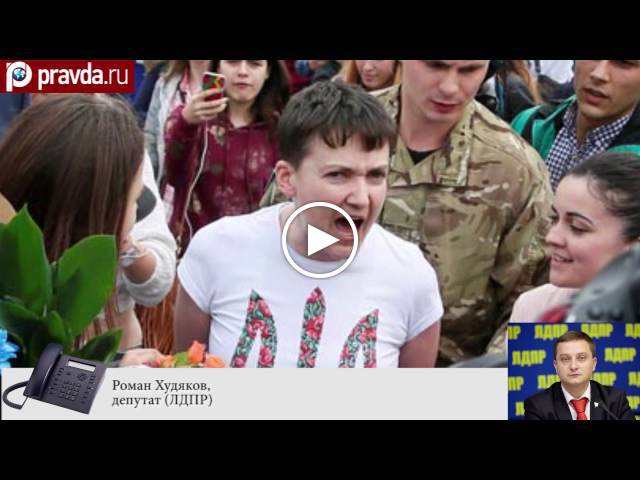 Роман Худяков, депутат (ЛДПР): «Это человек без души, это не женщина, это мужлан, в первую очередь, почему? Потому что когда женщина убивает людей, она должна прекрасно понимать, что из женщины она превращается в монстра. И здесь Савченко - это представитель тех людей, которые, у которых руки по локоть в крови, так что я считаю, что Савченко - это военный преступник, и для нее смертная казнь - это та как раз категория, под которую должны попадать такие люди, как она. Ни больше, ни меньше. И у нее жизнь будет очень печальна, я в этом уверен».