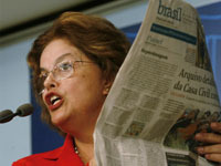 В 1970 году Дилма была арестована и обвинена в подрывной деятельности, ее пытали. Спустя три года дело пересмотрели, и она вышла на свободу. В 2001 году вступила в PT, а в 2005 году возглавила администрацию президента Лулы. Предана ему и не откажется отойти в сторону, если через четыре года Лула захочет баллотироваться на третий мандат.