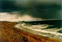 17 апреля, хотя ветер утих, небо было покрыто мрачными облаками, предвещавшими дурную погоду. Выехали после полудня. От поселка спустились к морю, чтобы миновать "семь гор", которые иначе пришлось бы преодолевать по суше. Когда они проехали по берегу 15 верст, поднялся такой ветер, что "качало сани и кидало собак". Затем начался снегопад, и караван Лессепса укрылся в пустой полуземлянке на реке Иованою в 12 верстах от реки Туманы.