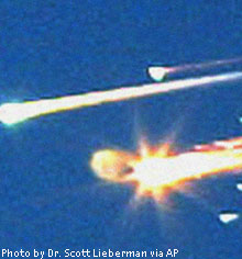 Начавшееся расследование гибели "Колумбии" ставит все новые вопросы. Так, некий астроном-любитель успел заснять странное явление во время рокового приземления шаттла — на снимках отчётливо видна яркая оранжевая вспышка наподобие электрического разряда . Что это такое, специалисты пока объяснить не могут. Газета "Сан-Франциско кроникл" публикует сегодня материал на эту тему.