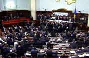 В среду на внеочередной сессии Верховной Рады Украины депутаты приняли несколько законопроектов, призванных ликвидировать политический кризис в стране. "За" проголосовали 402 депутата (необходимый минимум в подобных случаях — 300 голосов, т.н. конституционное большинство).