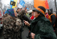 Почти та же картина сегодня повторяется в Киеве, где сотни тысяч демонстрантов, поддерживаемых примером и посланиями Саакашвили, подстегиваниями Валенсы, молитвами Папы Римского, матерью которого была украинка, предупреждениями Колина Пауэлла и Соланы в адрес Москвы, дают понять, что они готовы, в случае необходимости, идти до конца: от гражданского неповиновения до гражданской войны.