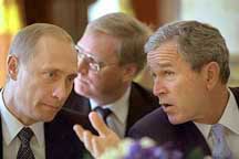 То есть, речь шла о том, в чем Вашингтон действительно заинтересован. Наверное, трудно было ожидать на итоговой пресс-конференции чего-то другого, но тем не менее, Буш ни словом не упомянул о том, что интересует Россию. А интересует очень многое. Стоит назвать хотя бы две проблемы, омрачающие отношения между двумя странами — до сих пор действующая поправка Джексона-Вэника, налагающая ограничения на торговые отношения и система противоракетной обороны, создание которой поощряет нынешняя администрация.