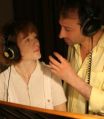 На фото: Полина Кутепова и Карэн Бадалов во время работы над спектаклем "Феникс" в студии Радио "Культура".