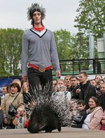 Топ-модель с хищной птицей на вытянутой руке — это дефиле красавица запомнит на всю оставшуюся жизнь. Но самым ярким и запоминаемым акцентом показа стал… дикобраз. Пройти по свеже сколоченному настилу (именно так выглядел временный подиум) было для него парой пустяков. Сотрудницы зоосада и здесь открыли "секрет Полишинеля": на репетиции колкий зверь никак не желал быть "хедлайнером" показа, постоянно суетился, пытаясь покинуть подиум раньше времени (прям как тот як, о котором речь шла выше). При этом пытался воспользоваться своим явным преимуществом. Зато при народе, при общем сборе моделей, дизайнеров и посетителей зоопарка выдал, что называется, мастер-класс.