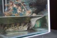 Воду в бассейне нужно менять не реже 2 раз в неделю. Прекрасно, если она очищается с помощью фильтра, однако при установке последнего следует соблюдать те же меры предосторожности, что и при установке помпы. Нужно также учесть и то, что молодые кайманчики довольно пугливы, поэтому в бассейне и на берегу для них желательно установить надежные укрытия (лучше всего для этого использовать различные коряги).