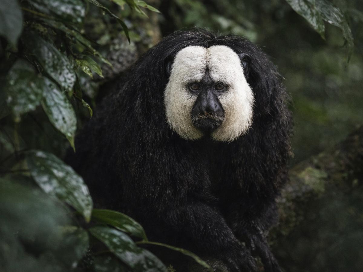 Иногда тропический лес кажется театральной сценой, где каждое существо играет свою роль. Среди листвы внезапно возникает темный силуэт с почти неестественно белым лицом — и исчезает так же быстро, как появился. В этот момент трудно поверить, что перед вами обычное животное, а не образ из мифа.