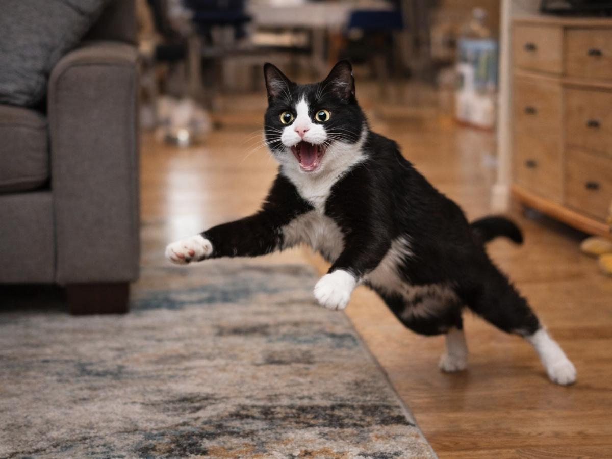Прыгающий кот в гостинной